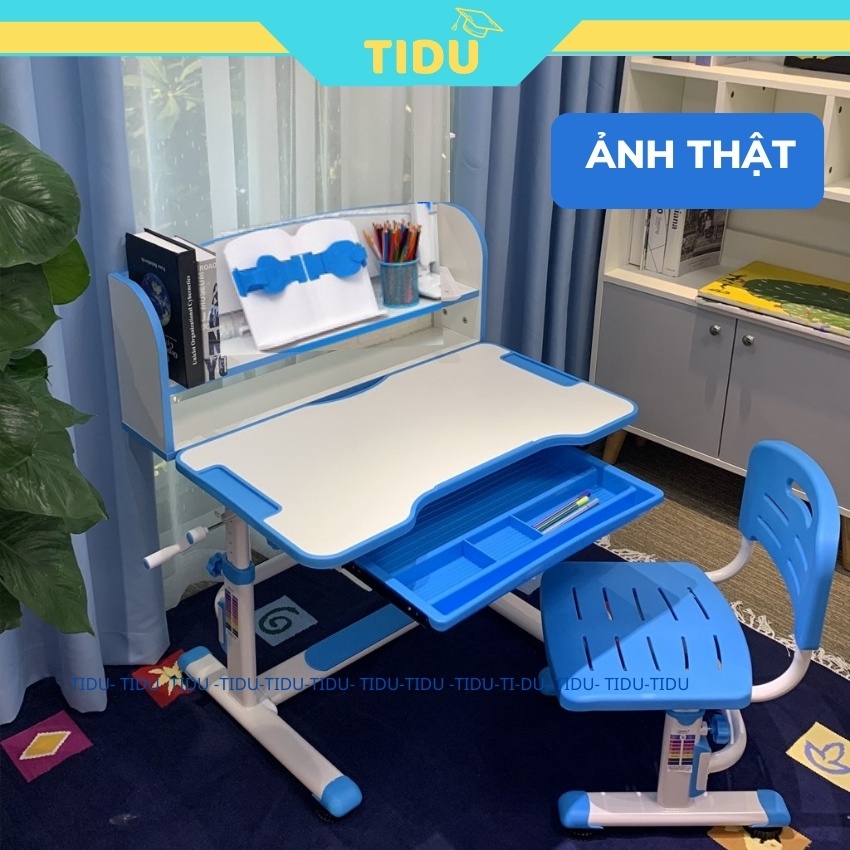 bộ bàn học chống gù chống cận thông minh học sinh Tidu R08 kích thước 60x80 nâng hạ độ cao bằng tay quay