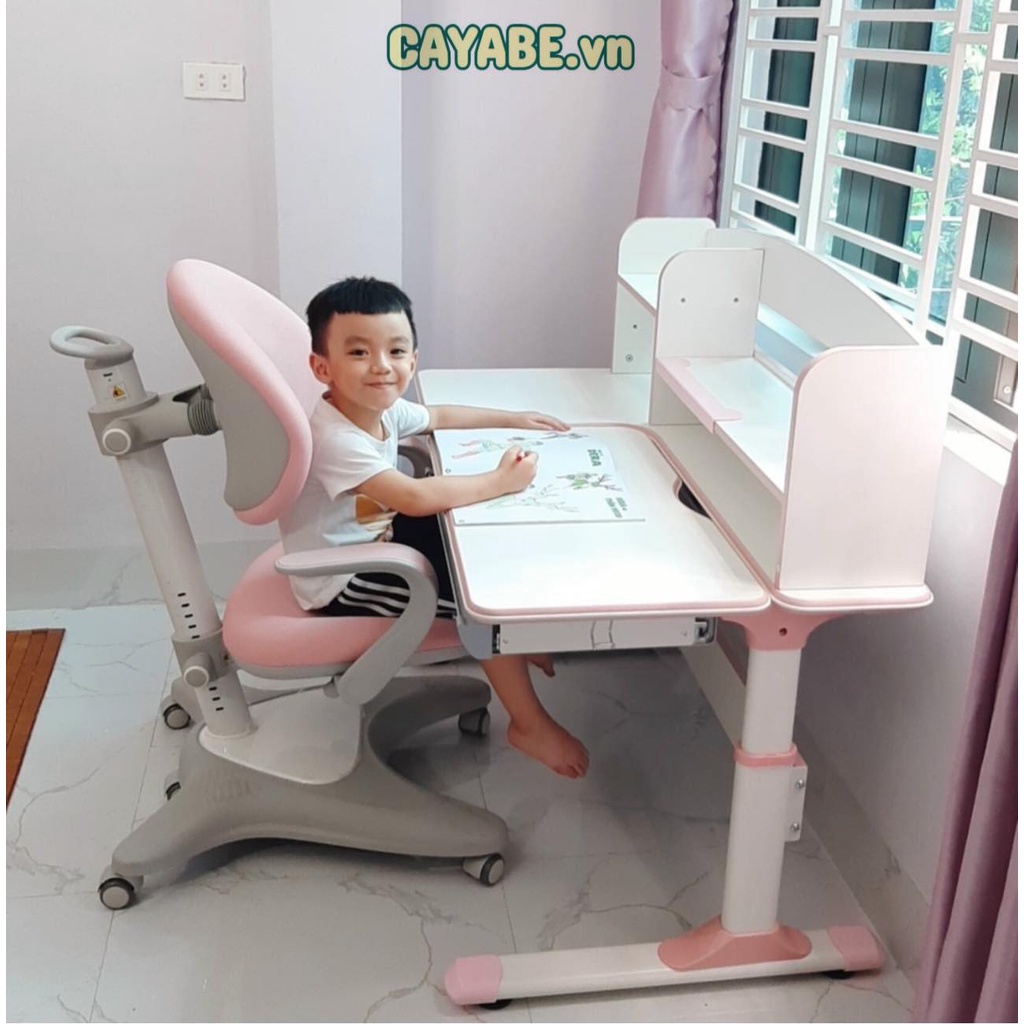 Bàn học chống gù, chống cận CAYABE Luxury xuất Hàn cho bé màu xám - xanh - hồng (dài 110 cm)
