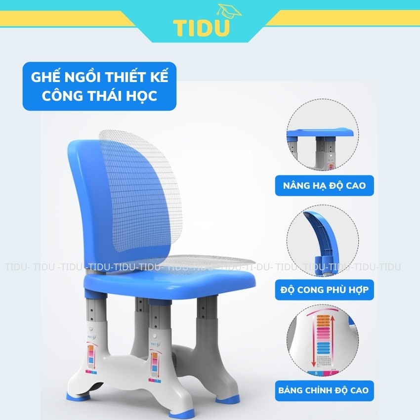 bộ bàn học chống gù Tidu B02 bàn ghế thông minh điều chỉnh độ cao kích thước 50x70cm