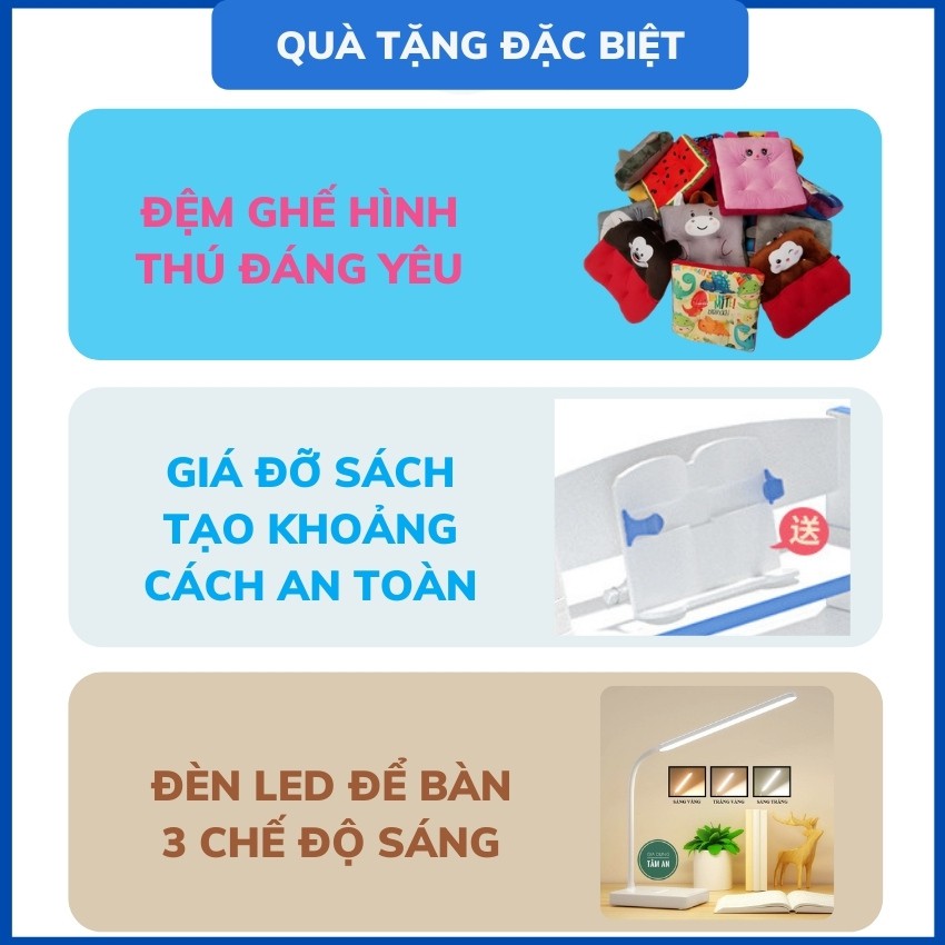 ✔ Chống cận thị, gù lưng do mặt bàn điều chỉnh góc nghiêng từ 0 đến 50 độ, tối ưu khoảng cách từ mắt trẻ tới mặt bàn. Bàn ghế có thể nâng lên hạ xuống, điều chỉnh nhiều góc độ khác nhau.
