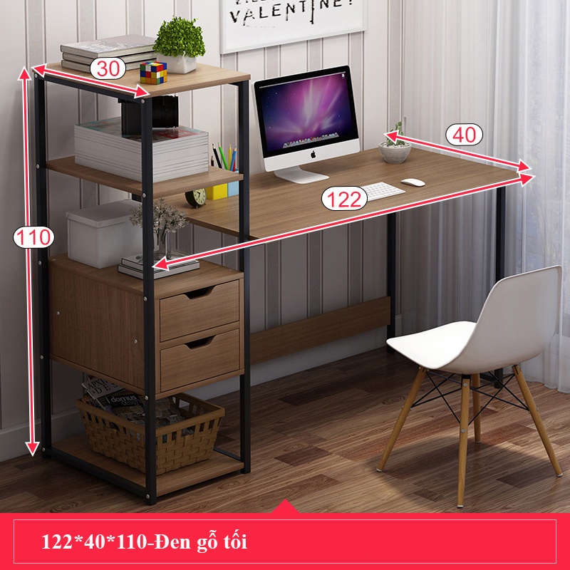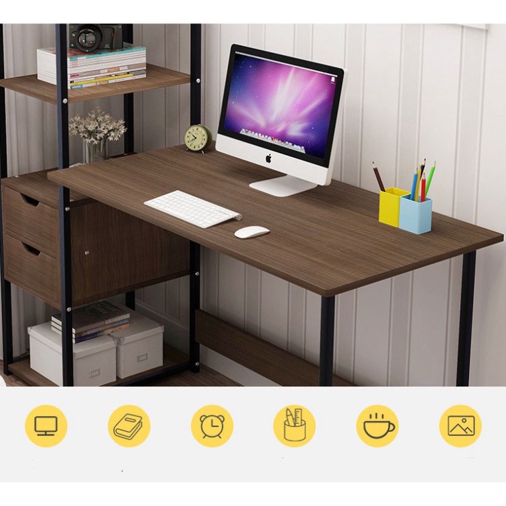 ✔️ Bàn gồm hai bộ phận là 1 bàn 1 giá kệ khung sắt vuông với 4 tầng 2 ngăn kéo
