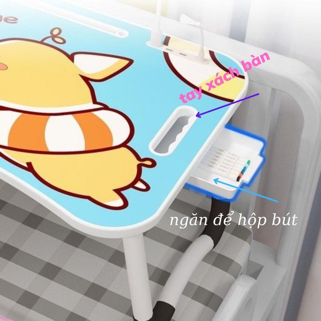 Bàn học gấp gọn cao cấp có khe cắm Ipad, có ngăn kéo để đựng bút, chỗ để cốc nước - Bàn học chống bụi- có tay xách tiện lợibề mặt in 3d chống bụi