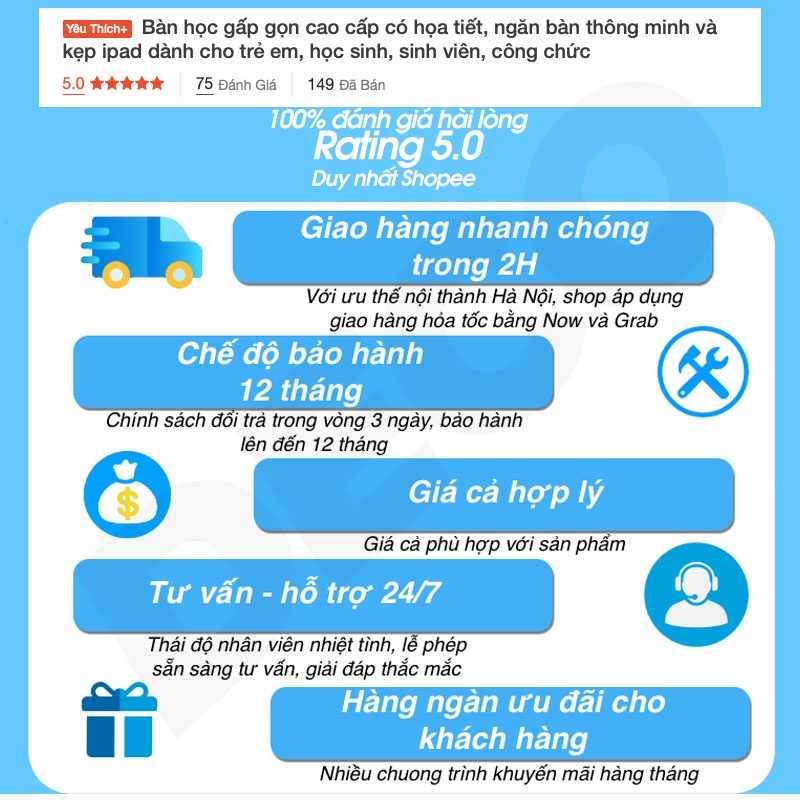 Giới thiệu Bàn học gấp gọn cao cấp có họa tiết, ngăn bàn thông minh và kẹp ipad dành cho trẻ em, học sinh, sinh viên, công chức