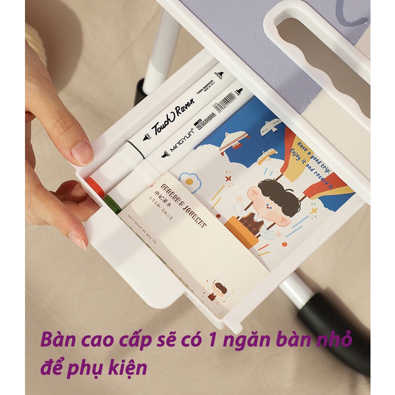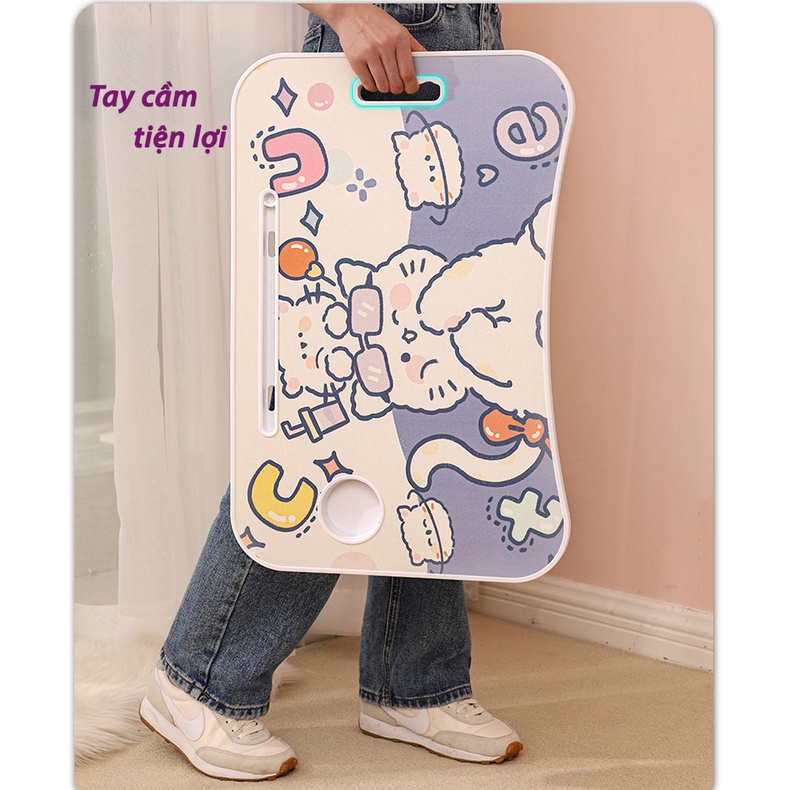 Bàn học gấp gọn cao cấp có họa tiết, ngăn bàn thông minh và kẹp ipad dành cho trẻ em, học sinh, sinh viên, công chức
