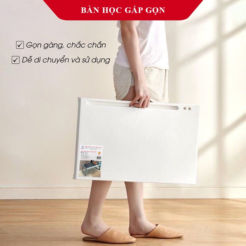 * Bàn học nhựa gấp gọn có khe cắm Ipad rất phù hợp với những bạn học sinh, sinh viên, nhân viên văn phòng khi làm việc với quyển sổ và cái laptop trên giường hay bất kì góc nhỏ nào!