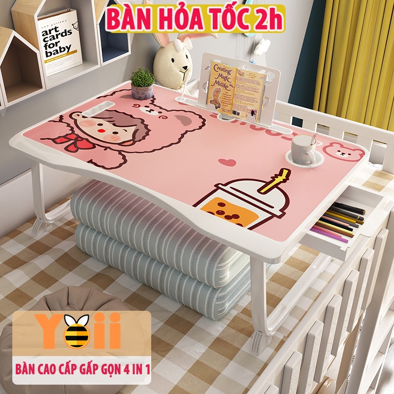 Bàn học gấp gọn thông minh chân vuông cao cấp có ngăn kéo và khe cắm ipad đa năng phù hợp với nhiều lứa tuổi Yoii Store