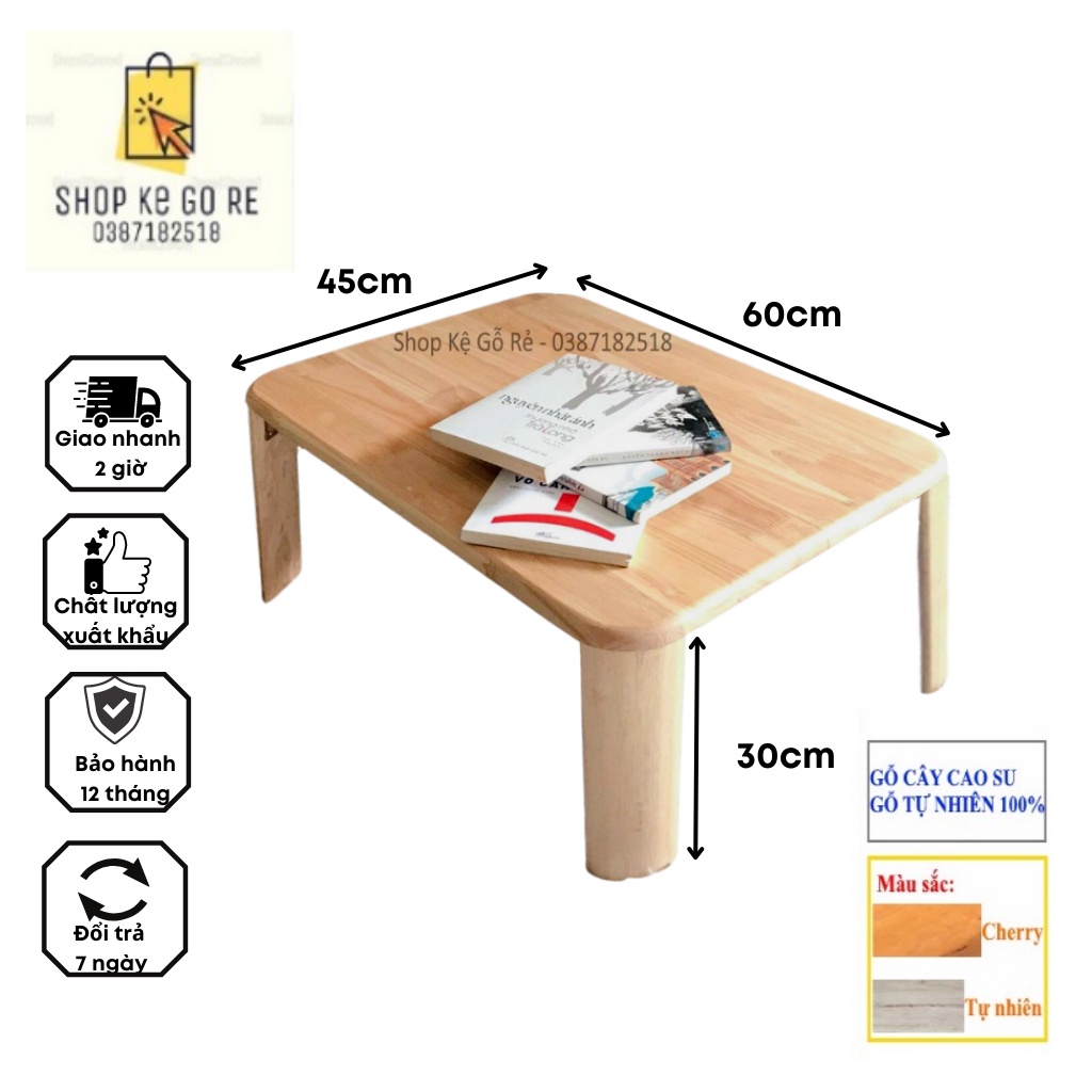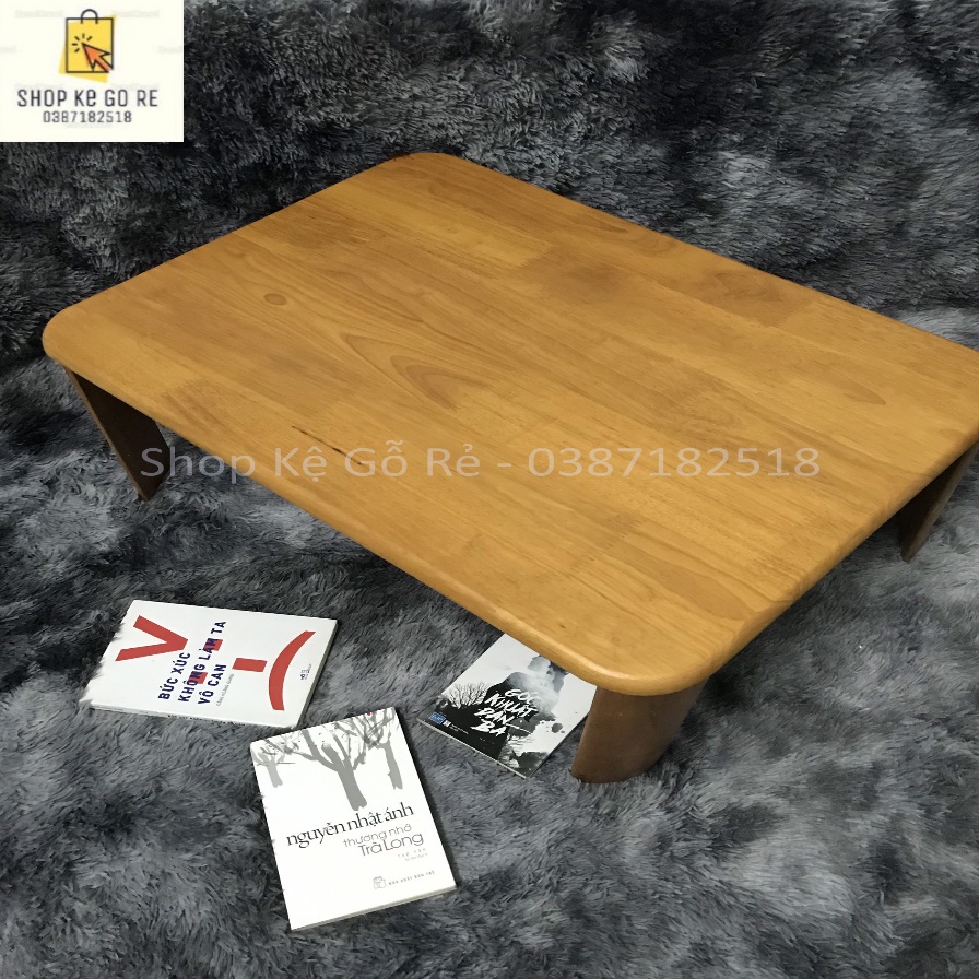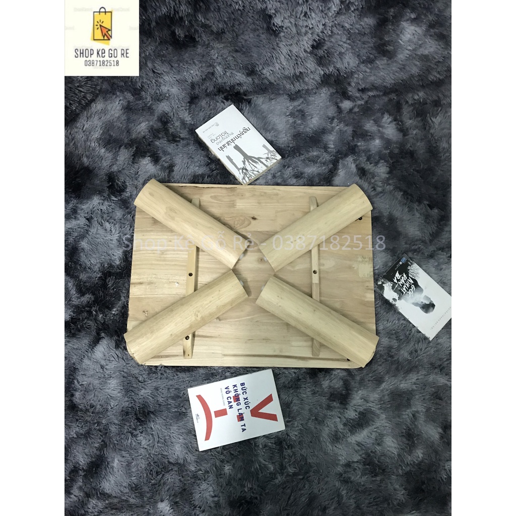 Bàn học gỗ chân bánh mì chất liệu gỗ cao su có thể gấp gọn 60cm x 45cm, có video thực tế, ảnh thật