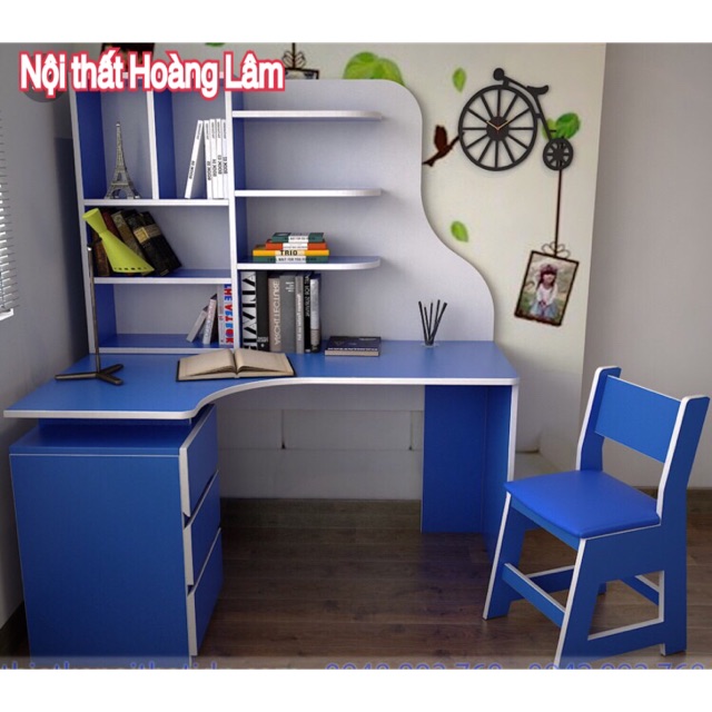 [Mã LIFEBKA5 giảm 10% tối đa 1 Triệu đơn 500k] Bàn học góc chữ L liền giá sách sắc màu