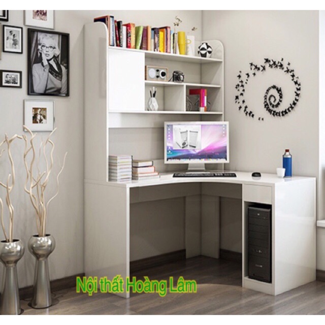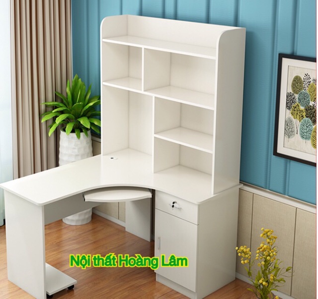 Bàn học góc liền giá sách chữ L