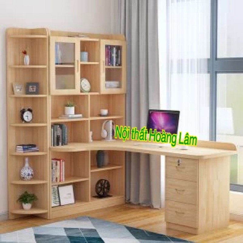 Bàn học góc liền giá sách mẫu mới
