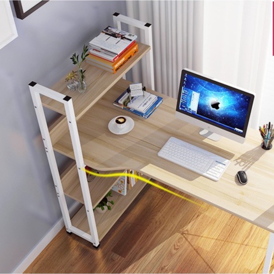Bàn làm việc kèm giá sách rất tiện lợi cho việc học tập, làm việc. Với thiết kế giá sách sườn trái cao và rộng giúp bạn thoải mái để đồ và sách vở. Đặc biệt bàn có các thanh chặn ở giá sách giúp đồ vật không bị rơi ra ngoài🔰 NÂP CẤP: