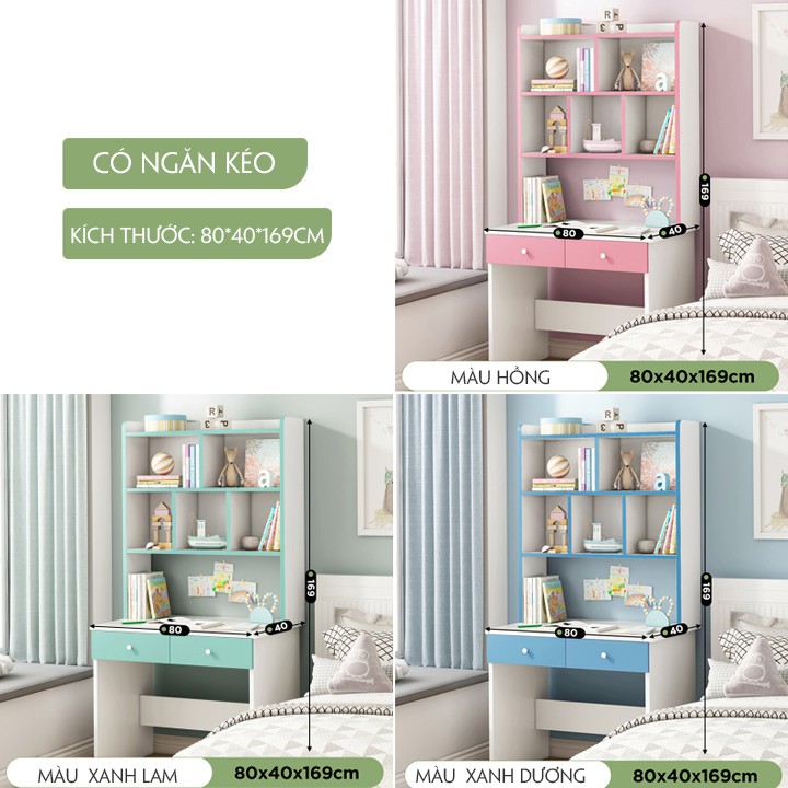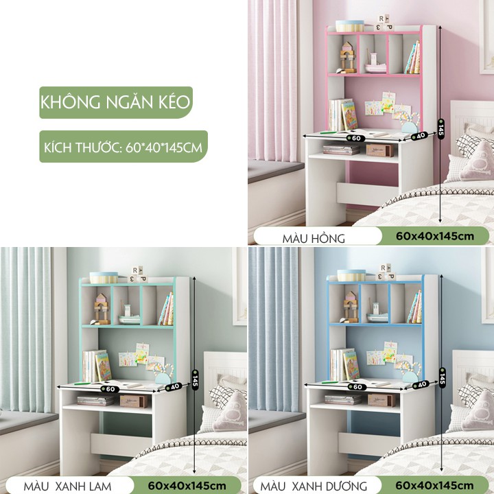 Bàn học kèm giá sách có ngăn kéo, 3 tầng, gỗ công nghiệp size 40x60x145cm, 40x80x169cm