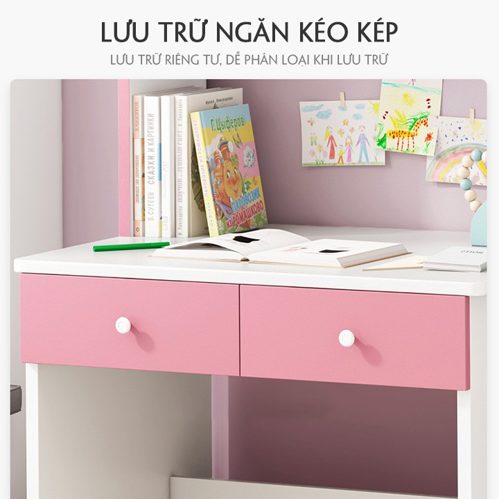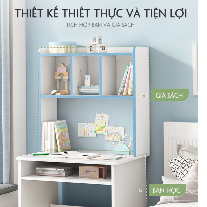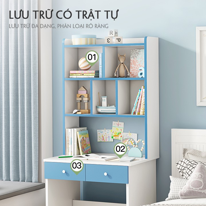 *Ưu điểm bàn học- Có 5 ngăn trên đê sách và 1 ngăn rộng ở dưới