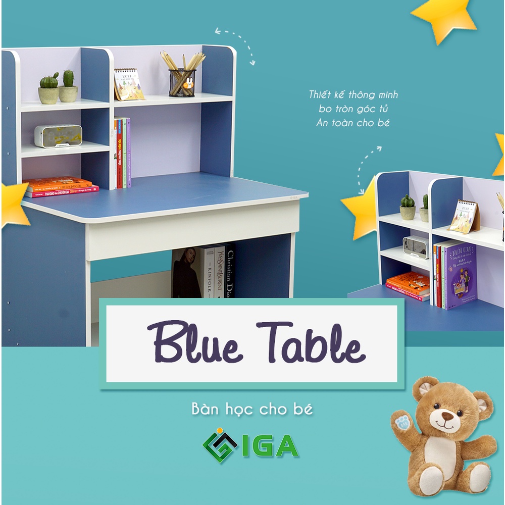 Bàn học Blue table Sở hữu thiết kế tiện dụng mang đến cho trẻ tư thế ngồi và tư thế đọc sách đúng chuẩn và hiệu quả nhất. Không chỉ mang màu sắc tươi sáng, sinh động và ngộ nghĩnh, tạo nên một không gian sáng tạo, mà sản phẩm còn được bo tròn các góc cạnh đảm bảo sự an toàn cho bé và chất liệu gỗ - một chất liệu rất thích hợp để dùng khi thiết kế và trang trí phòng trẻ bởi độ an toàn và thân thiện, tốt cho sự phát triển của bé.