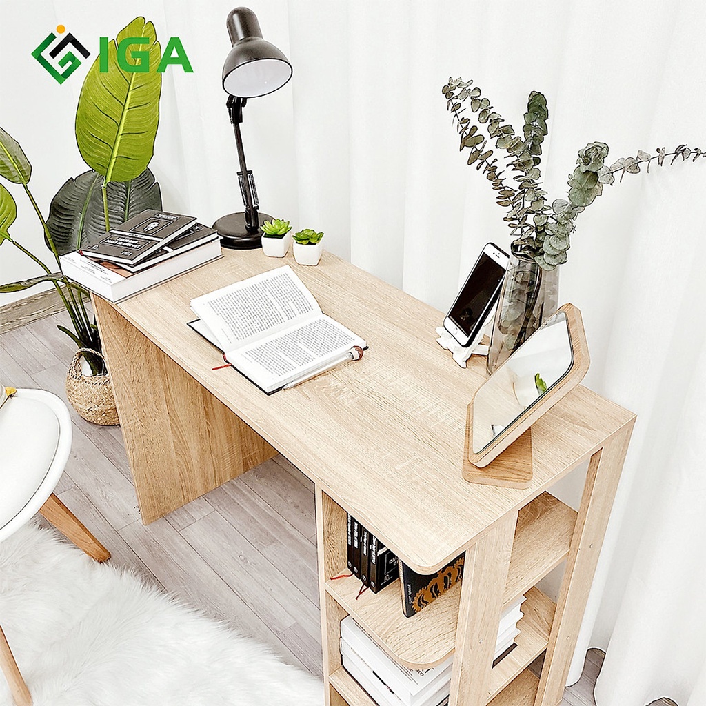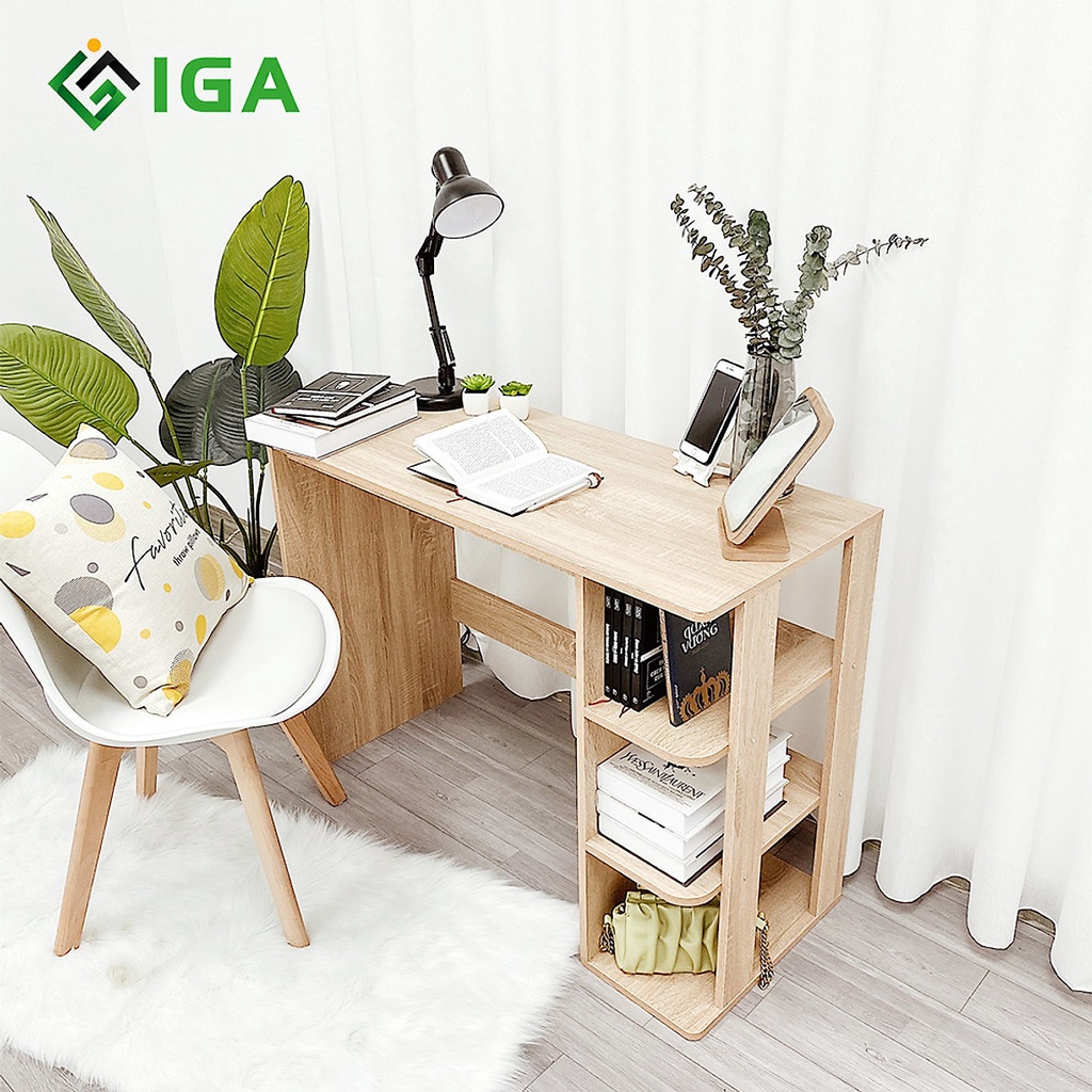 - Đây là mẫu bàn được thiết kế độc đáo có sự kết hợp hoàn hảo giữa kiểu dáng bàn học và giá sách. Vừa là bàn học, làm việc, vừa mang lại một hệ thống giá sách lớn, thoải mái không gian để sách, vở, báo... Hệ thống giá sách được chia làm 3 khoang mang lại không gian để sách vở lớn, dễ dàng phân loại thuận tiện cho người dùng.