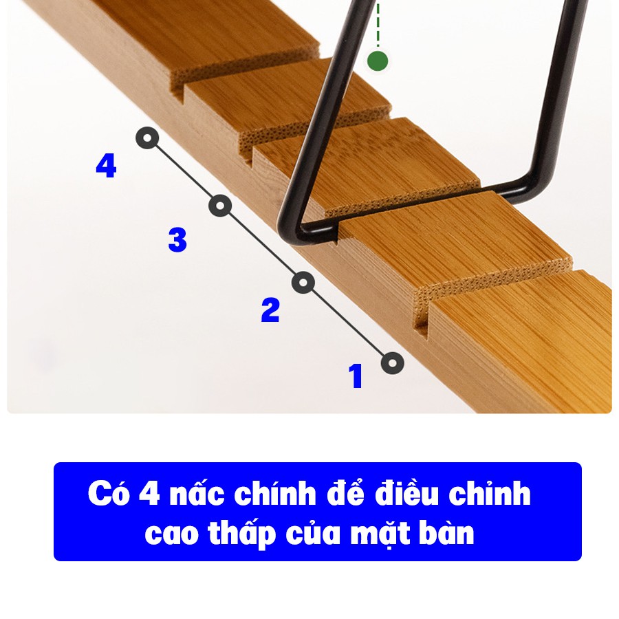 - Thiết kế thông minh với các khớp có thể điều chỉnh được: Điều chỉnh độ cao của mặt bàn, điều chỉnh độ cao của chân bàn, có kệ đỡ laptop hoặc sách cực kì tiện lợi