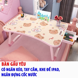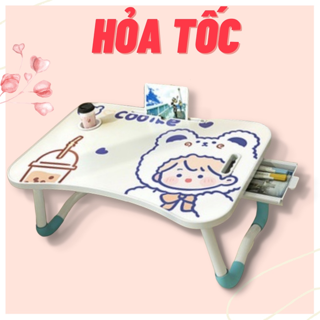 Bàn làm việc gấp gọn cao cấp, có ngăn kéo và khe cắm ipad, chỗ để cốc nước, mặt bàn in hình 3d nhiều hình dễ thương✅ Bàn làm việc gấp gọn thông minh có khe cắm ipad, điện thoại siêu cute. Kiểu dáng gọn gàng, thiết kế chắc chắn làm bàn học trên giường hoặc dưới đất rất tiện lợi.