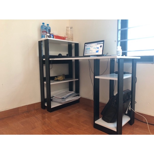 bao gồm 1 bàn học và giá sách 3 tầng kết hợp 1 ngăn để đồ nhỏ 2 tầng.