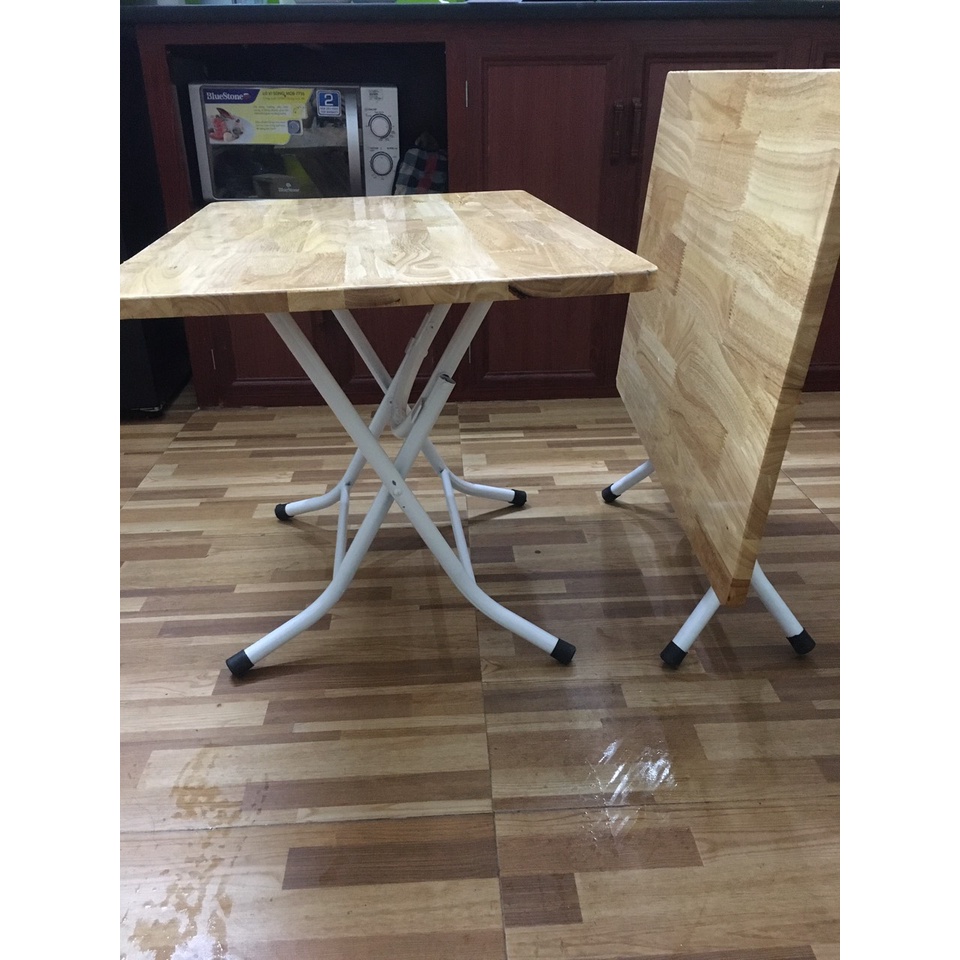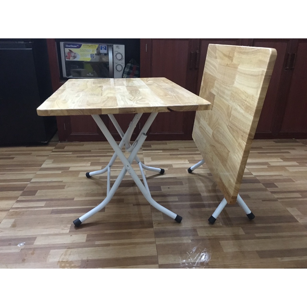 Bàn gấp đa năng chân sơn tĩnh điện gỗ cao su giá rẻ một sự kết hợp rất ăn ý, chắc chắn và tiện lợi.- Chân bàn làm từ ống sắt phi 2,5cm sơn tĩnh điện màu trắng