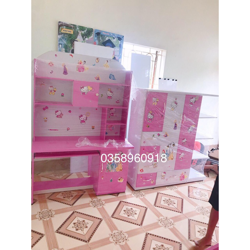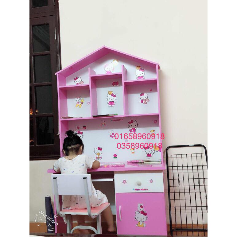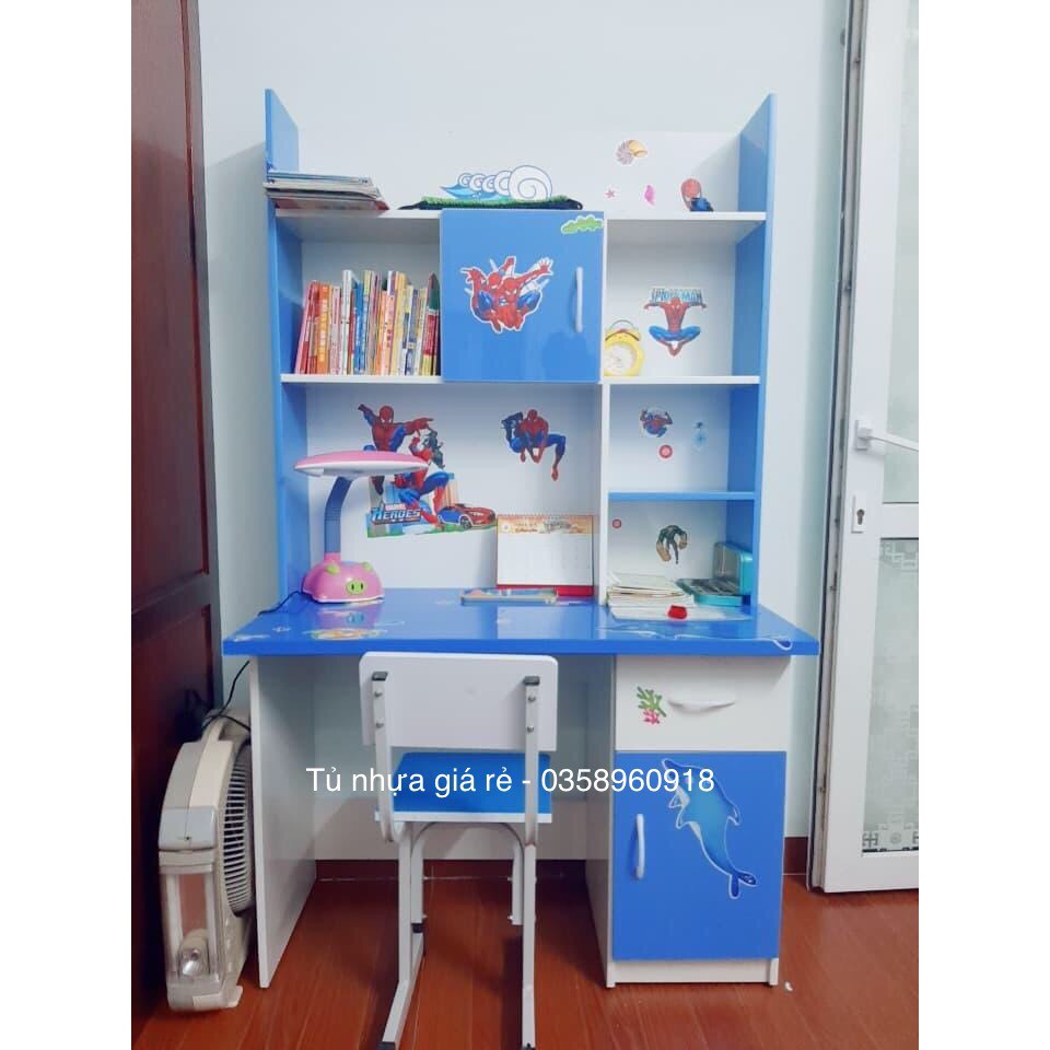 Bàn học nhựa Đài Loan cho bé trai bé gái có giá sách [FREESHIP] màu Trắng hồng xanh dương vân gỗ óc chó vân gỗ