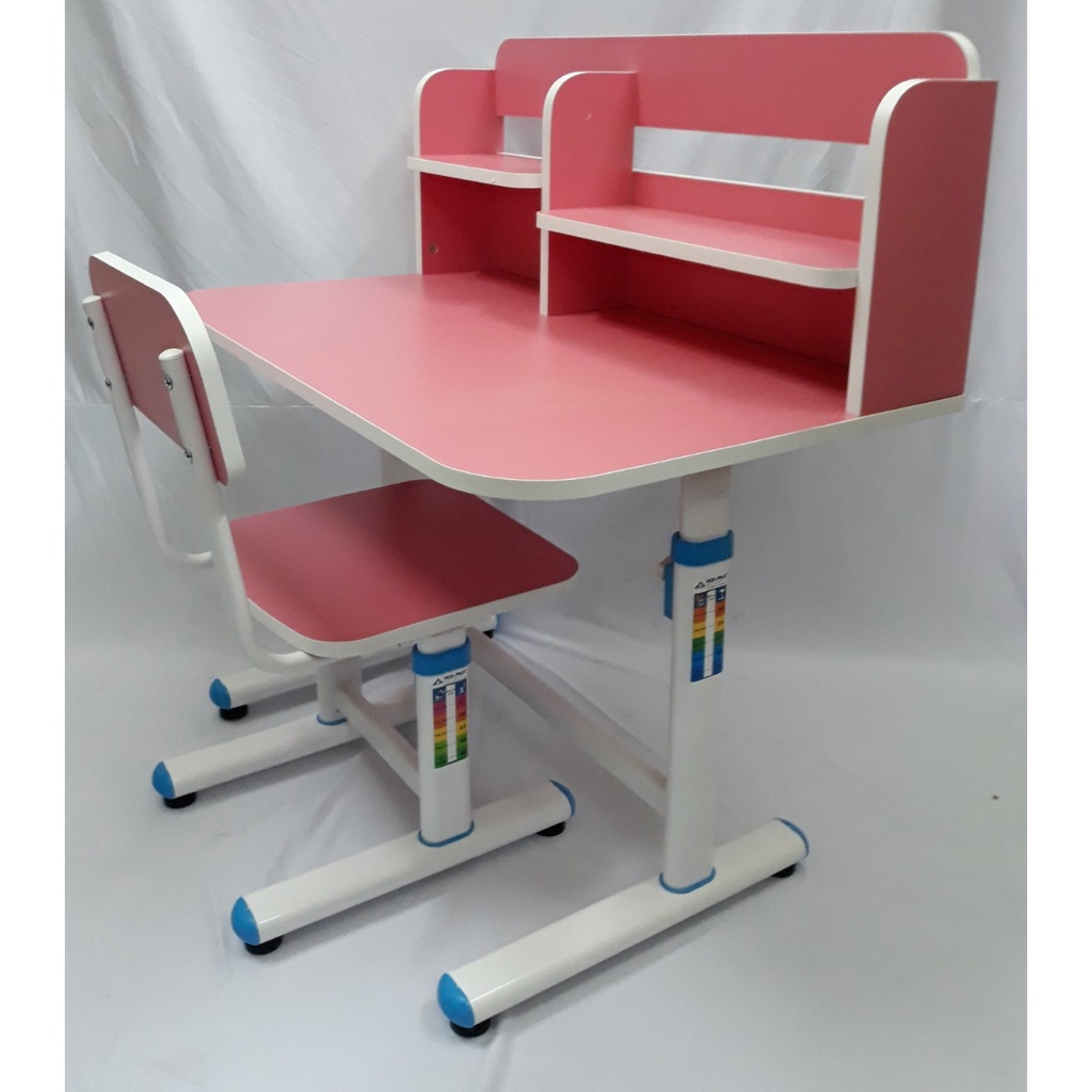 - Bàn ghế có thể tăng chỉnh chiều cao, bàn có giá sách liền trên mặt bàn tiện dụng.