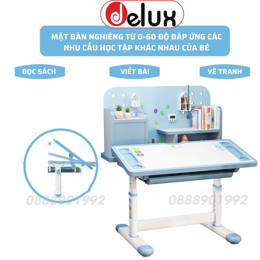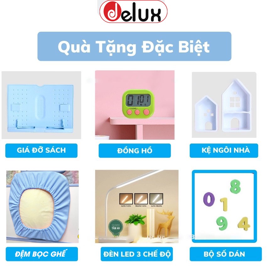 Nhà cửa & Đời sống > Nội thất > Bàn || Bàn học sinh Delux A16 có giá sách chống gù chống cận, bàn học thông minh kèm kệ sách phù hợp cho học sinh tiểu họcCòn hàng