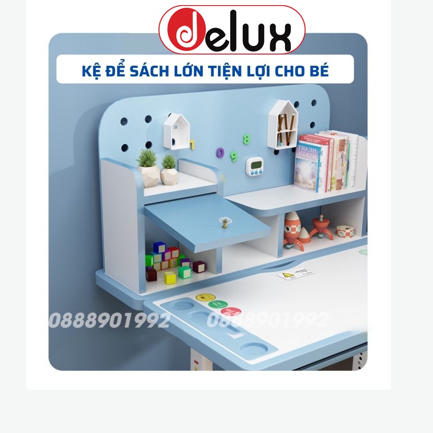 Bàn học sinh Delux A16 có giá sách chống gù chống cận, bàn học thông minh kèm kệ sách phù hợp cho học sinh tiểu học