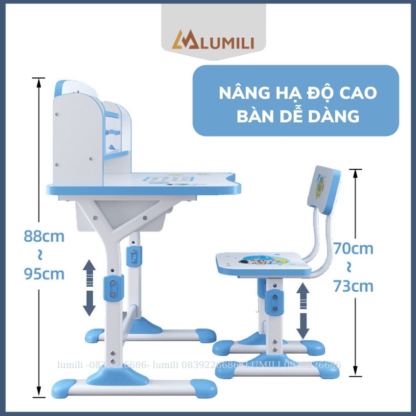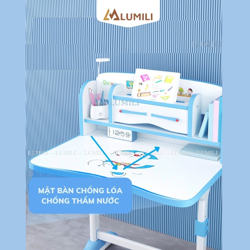 Bộ bàn học sinh Lumili D1 có giá sách chống gù chống cận, bàn học thông minh kèm kệ sách phù hợp cho học sinh tiểu học
