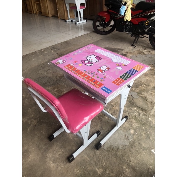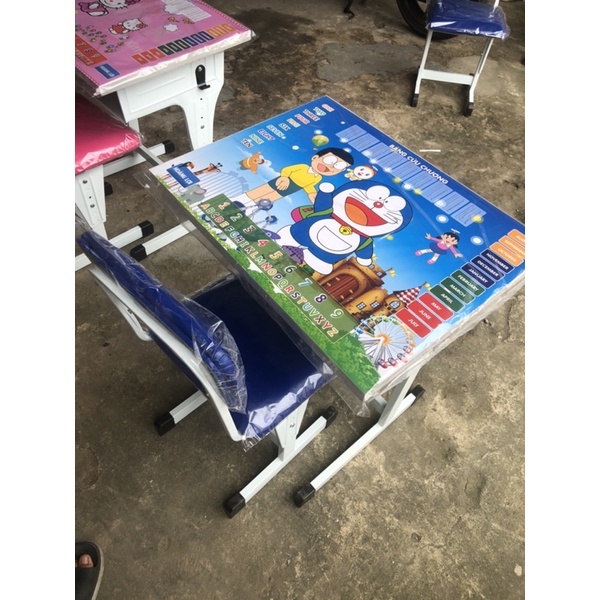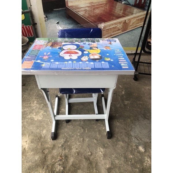 bàn học sinh được thiết kế kiểu nhỏ gọn cho bé từ 1 đến 5 tuổi, mặt bàn được in hình dán, chứ cái và bảng cửu chương cho bé theo tuỳ độ tuổi.