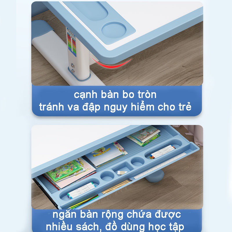 ✅Mặt bàn: Thiết kế phần đựng bút, tẩy,... tránh tình trạng rơi đồ dùng học tập khi điều chỉnh độ nghiêng mặt bàn..