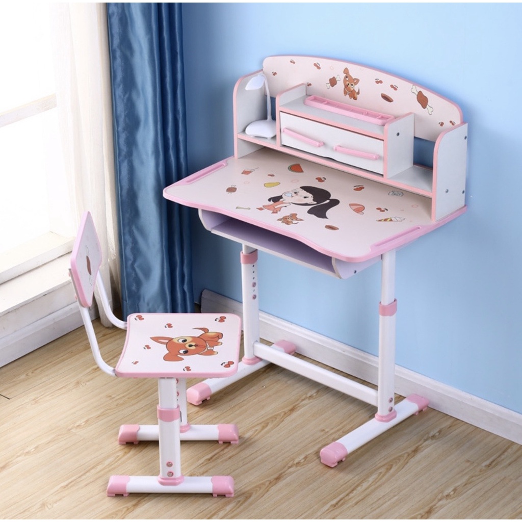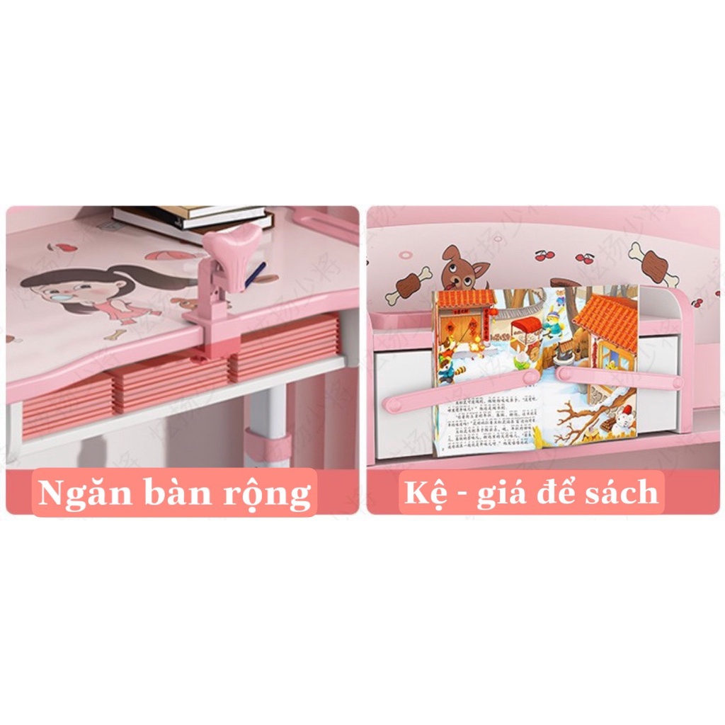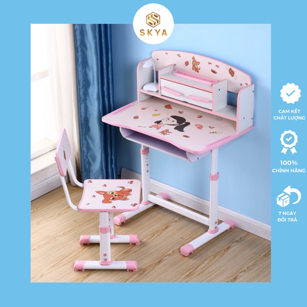 Bộ bàn học sinh SKYA C032 bàn học thông minh cho bé chống cận chống gù điều chỉnh được độ cao có giá sách ngăn đựng đồ