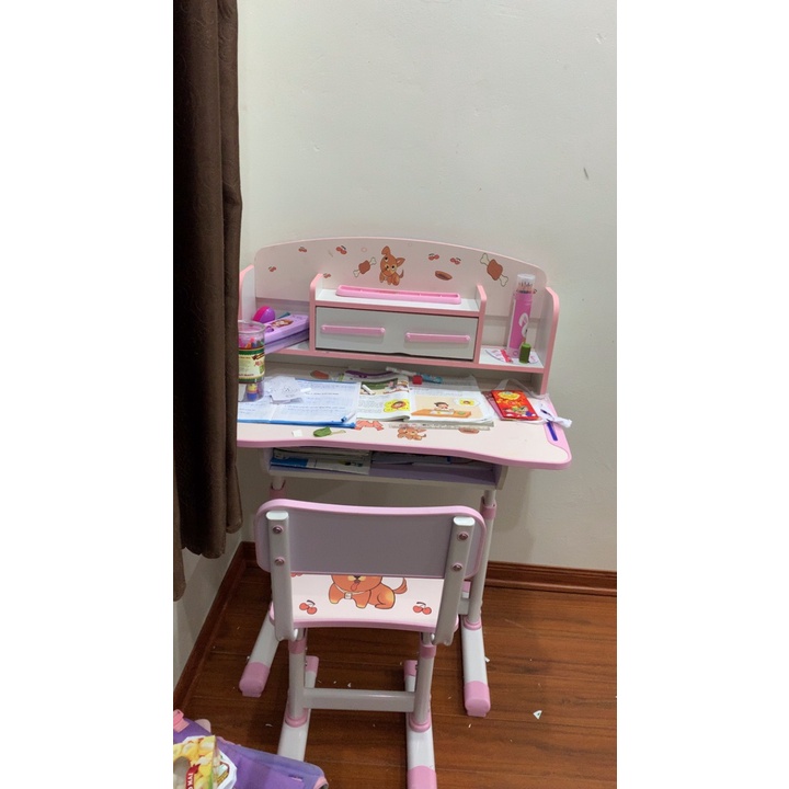 được tích hợp nhiều tiện ích như: ngắn kéo đa chức năng, ngăn chứa đồ dùng học tập. Bé có thể dễ dàng học tập, tiện lợi hơn khi học online và lưu trữ đồ đạc gọn gàng, khoa học.