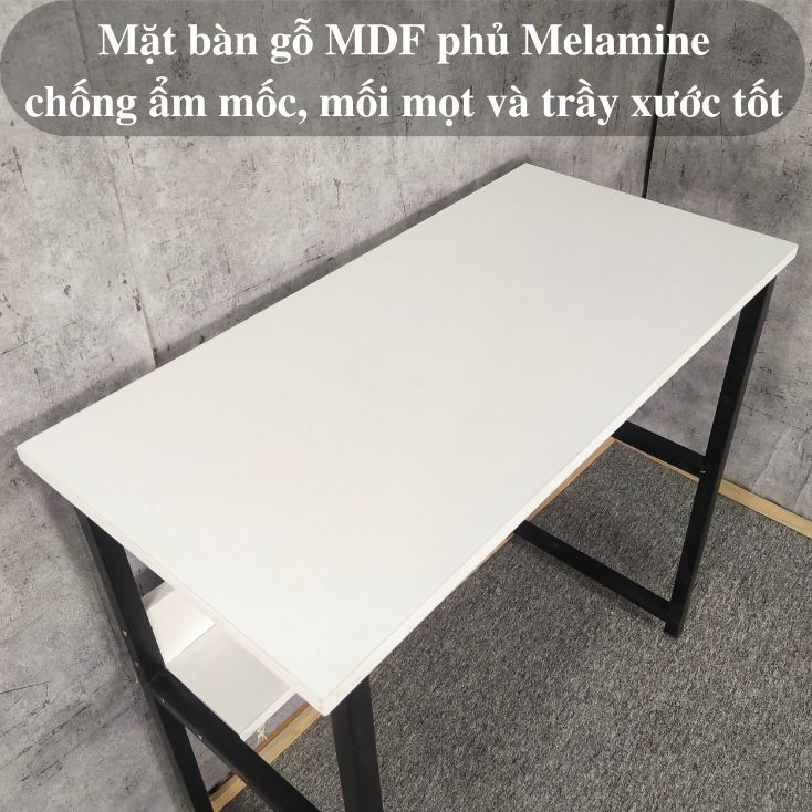 - Chất liệu: Khung thép chống gỉ sét chịu lực cao, mặt bàn gỗ chuẩn xuất khẩu Hàn Quốc phủ lớp melamine chống thấm nước và trầy xước tốt.