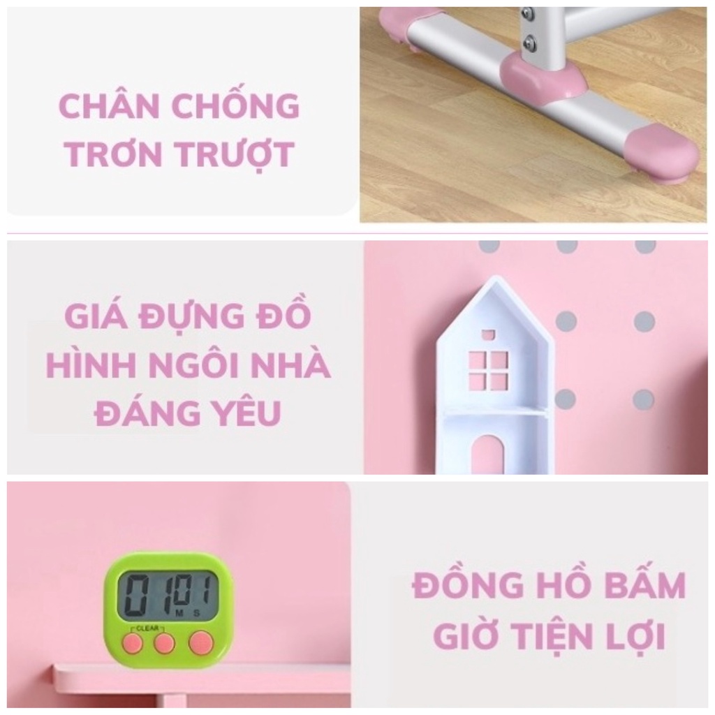 ✅Mặt bàn: Thiết kế phần đựng bút, tẩy,... tránh tình trạng rơi đồ dùng học tập khi điều chỉnh độ nghiêng mặt bàn..