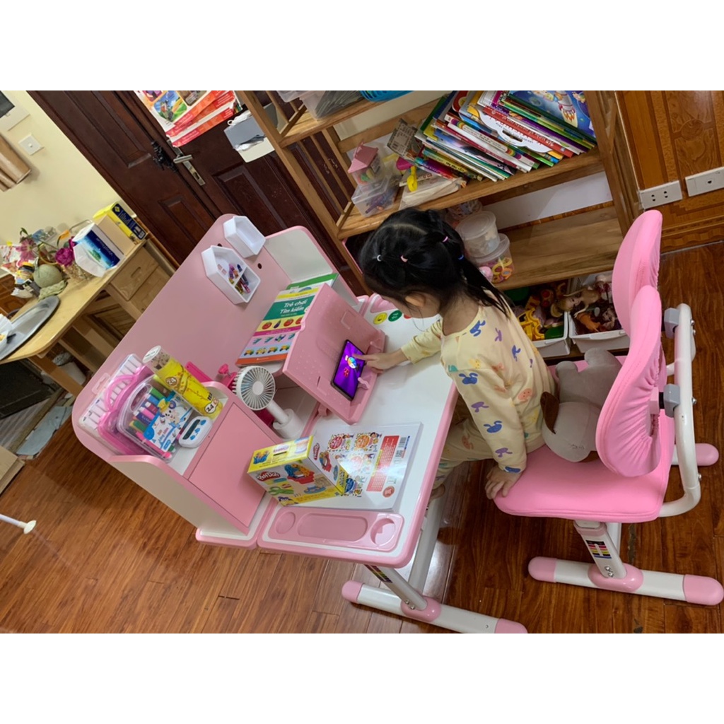 Bộ bàn học SKYA A162 bàn học cho bé chống cận chống gù điều chỉnh thông minh kèm ngăn kéo và giá sách tiện dụng học sinh