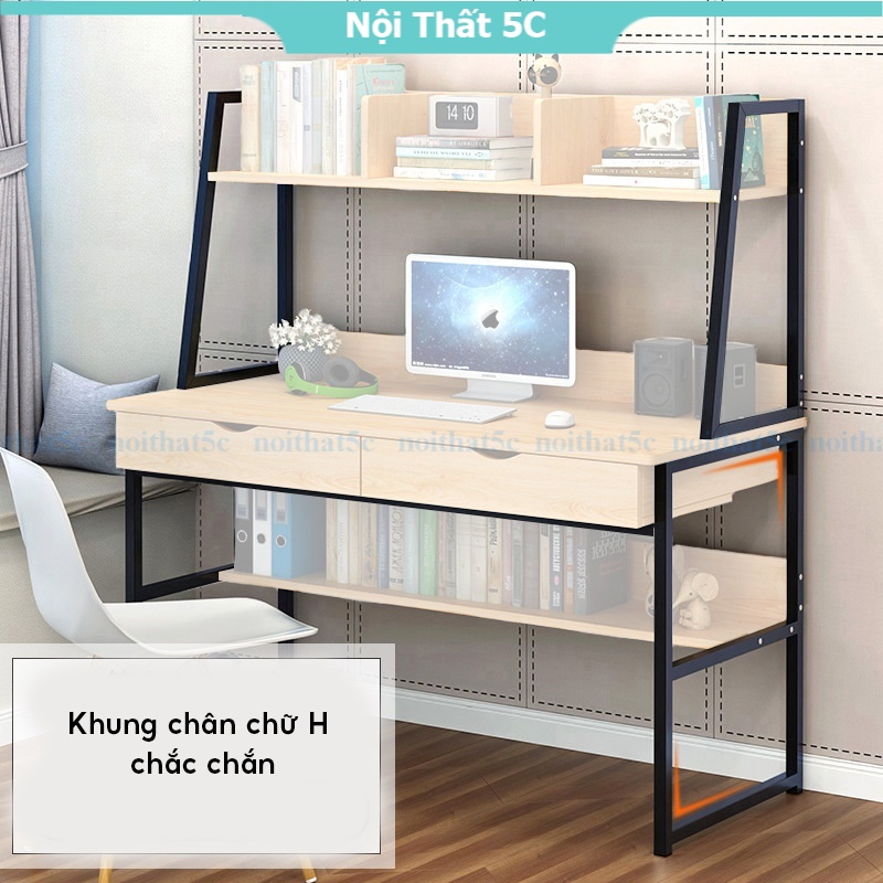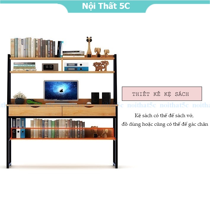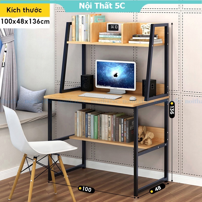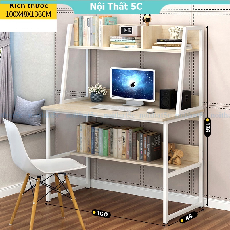 Bàn học tập, bàn làm việc liền kệ sách gầm bàn và trên mặt bàn khung sắt sơn tĩnh điện hiện đại, lắp ráp dễ dàng.Nội thất 5C chuyên cung cấp các dòng sản phẩm nội thất đẹp, được lựa chọn kỹ càng với những thiết kế độc đáo, hợp với xu hướng, hứa hẹn mang lại một không gian sống tiện nghi và có điểm nhấn cho quý khách hàng.