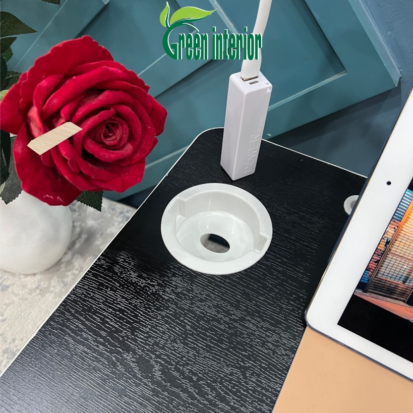 - Tên sản phẩm: Bàn học thông minh, bàn làm việc chân thép xếp gọn Green Furni có cốc để ly tiện lợi MÀU ĐEN VÂN GỖ TĐ
