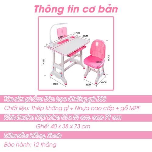 Giới thiệu Bàn học thông minh chống gù B05, bàn học sinh cho bé từ tiểu học SIZE LỚN 80 CM (Tặng kèm đèn học + đệm tựa lưng)