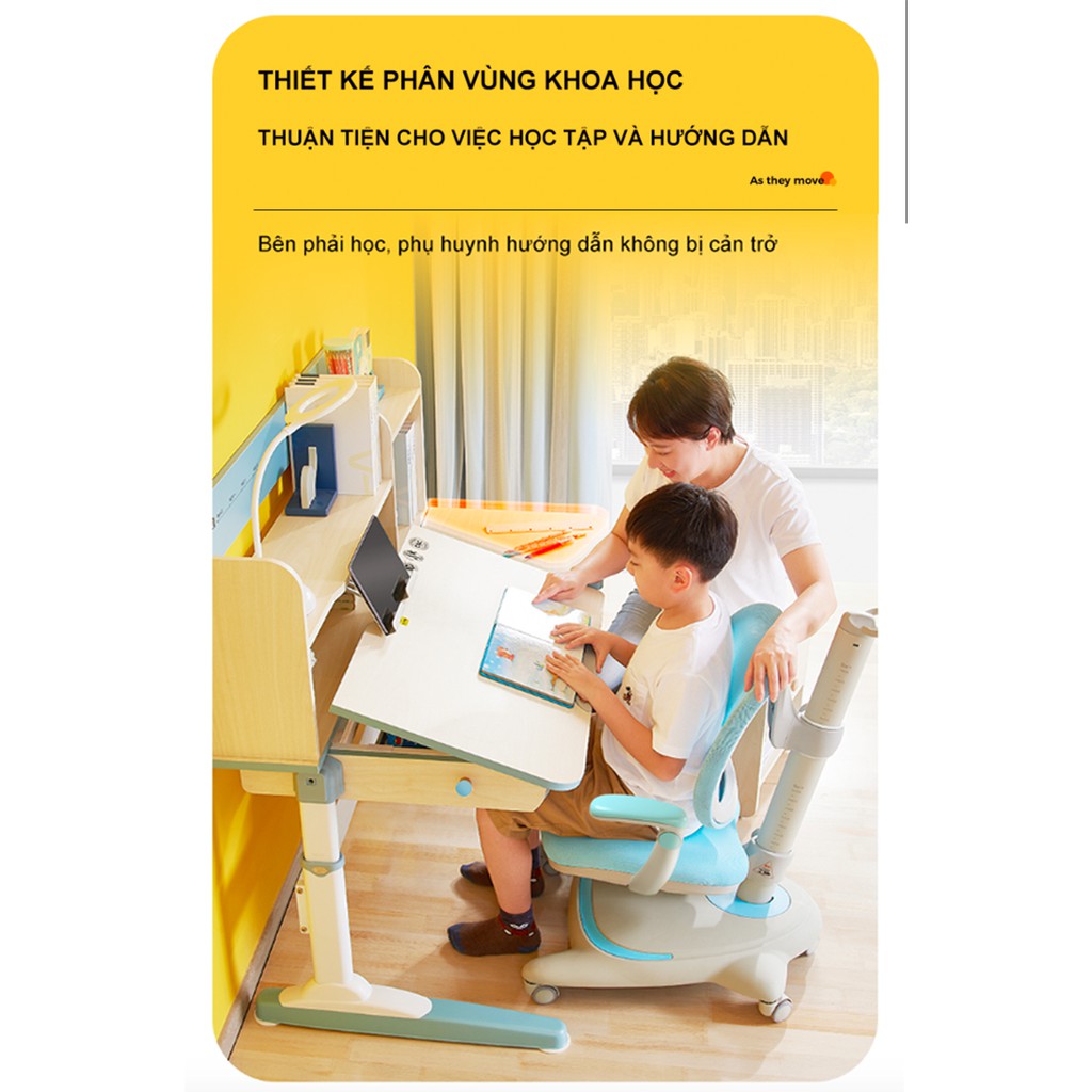 Chế độ: Nâng hạ chiều cao bàn – ghế, điều chỉnh độ nghiêng mặt bàn.
