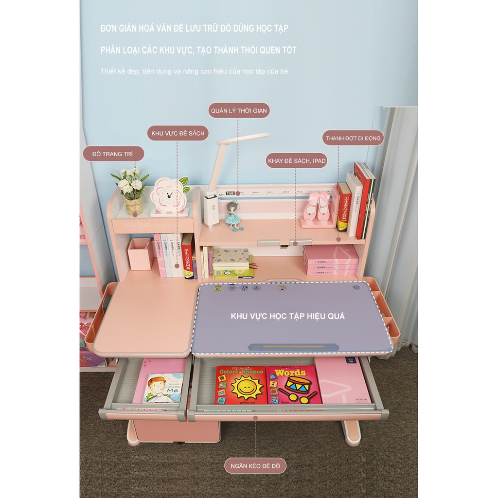 Nhà cửa & Đời sống > Nội thất > Bàn || BÀN HỌC THÔNG MINH CHỐNG GÙ, CHỐNG CẬN DÀI 1,2M BSUC MÃ DRZ-12001 CHO TRẺ EM MÀU HỒNGCòn hàng
