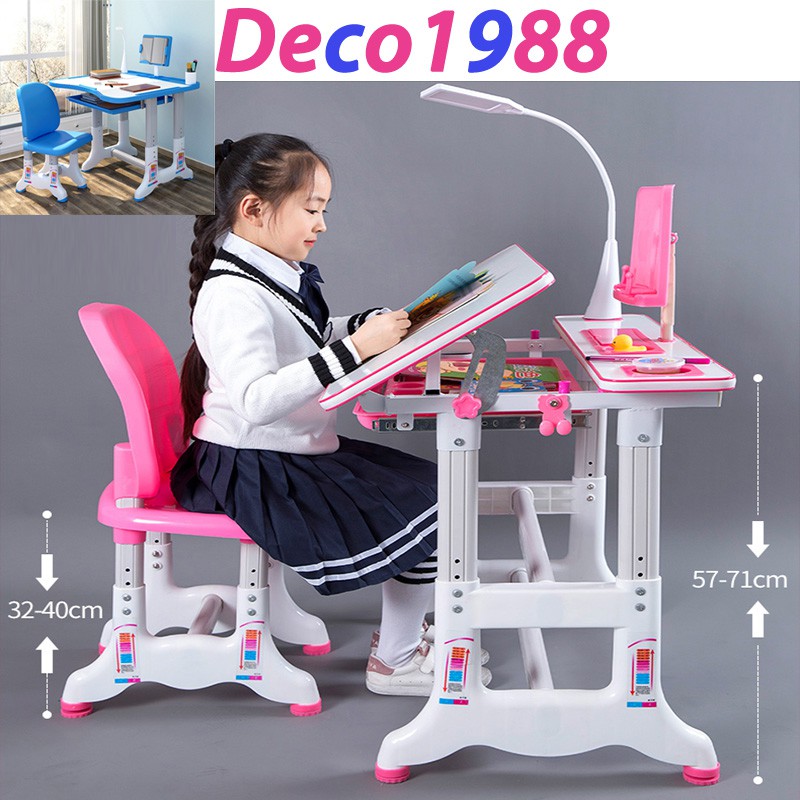 Bộ bàn học thông minh Delux B, bàn học chống gù cho học sinh tiểu học (Tặng đèn học + đệm hình thú)