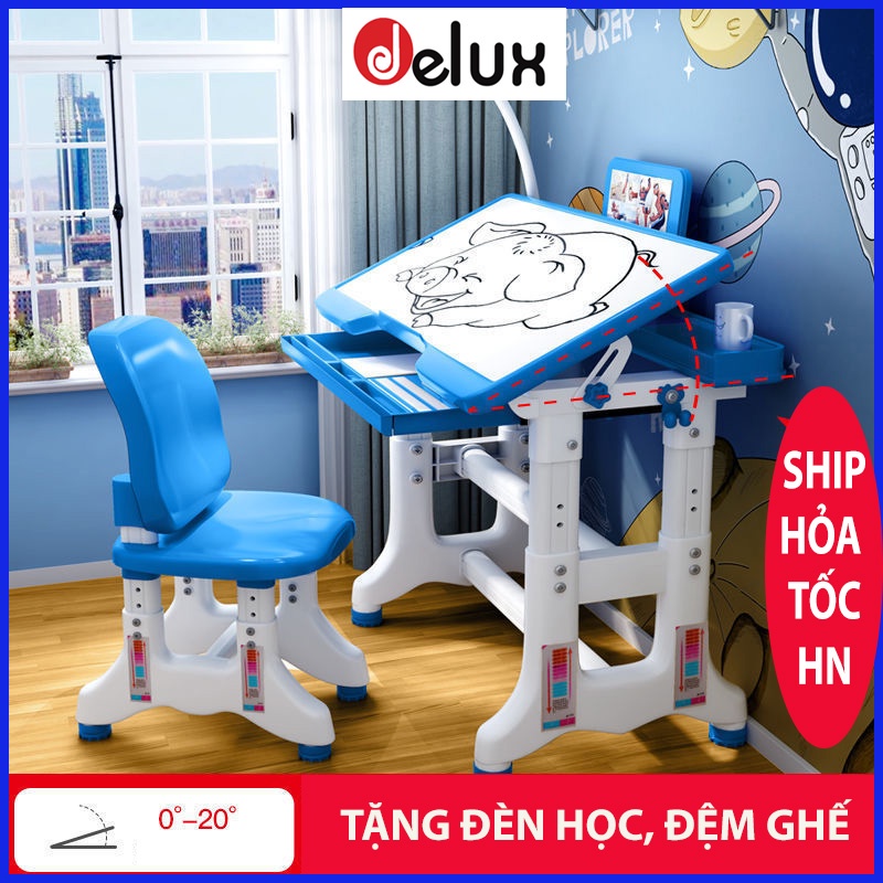 Nhà cửa & Đời sống > Nội thất > Bàn || Bộ bàn học thông minh Delux B, bàn học chống gù cho học sinh tiểu học (Tặng đèn học + đệm hình thú)Còn hàng