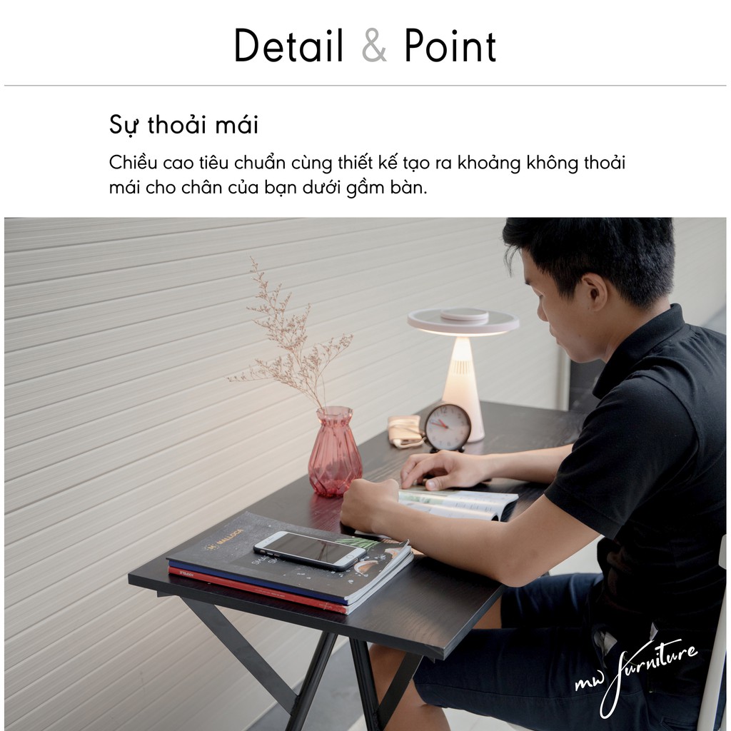 - Chất liệu: Mặt gỗ MDF và chân sắt sơn tĩnh điện