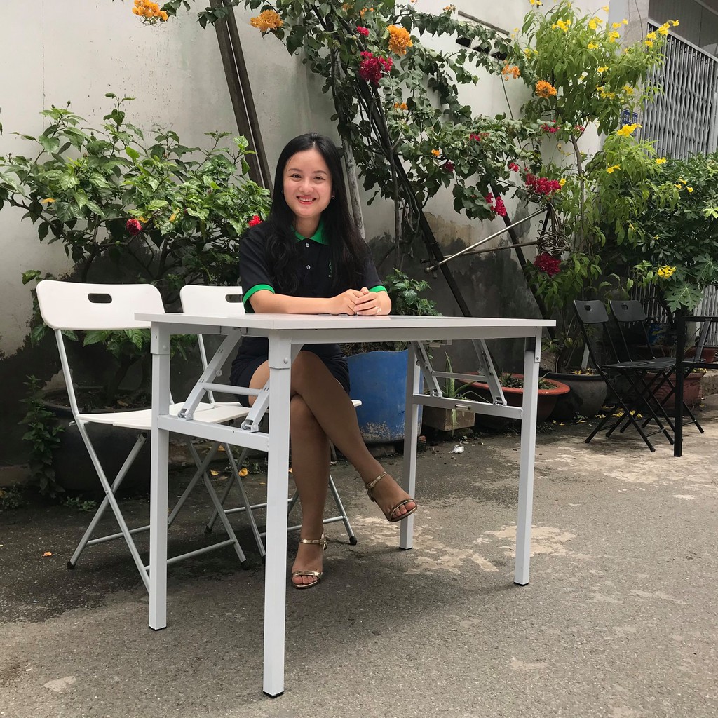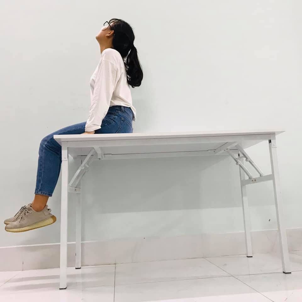 Giới thiệu Bàn học xếp gọn mặt gỗ MDF TRẮNG TINH KHÔI CHÂN SẮT MÀU TRẮNG (R50xD100xC75cm) chân sắt vuông 30x30