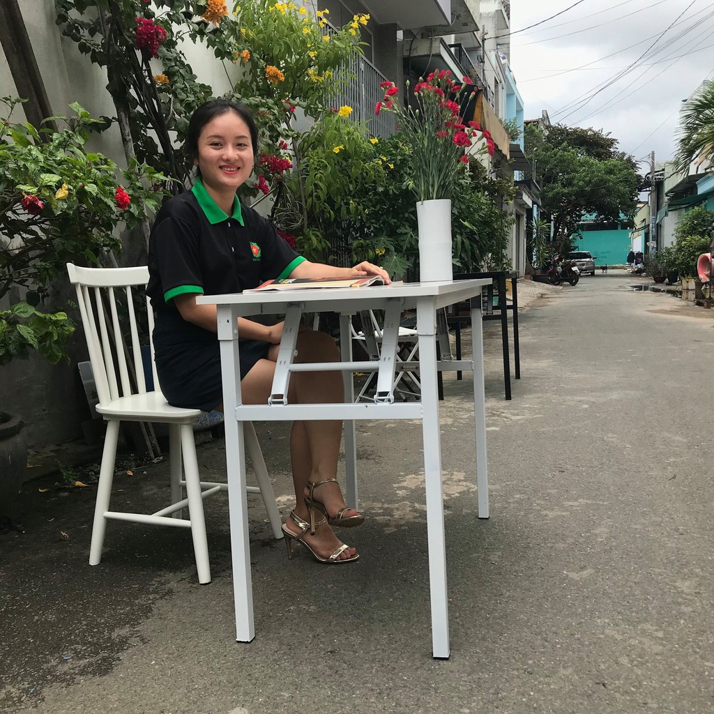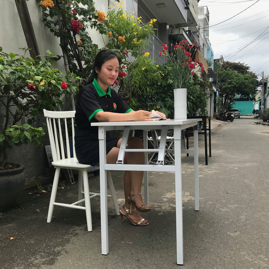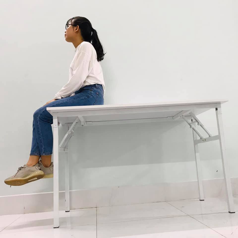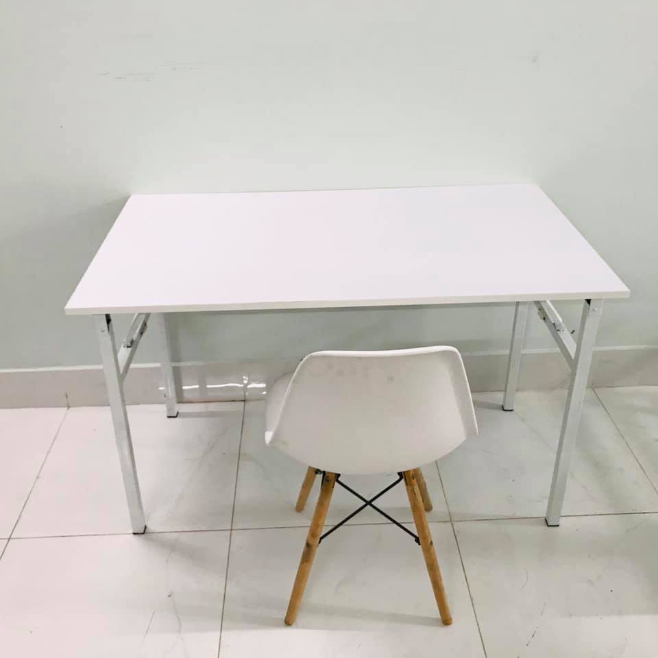 Nhà cửa & Đời sống > Nội thất > Bàn || Bàn học xếp gọn mặt gỗ MDF TRẮNG TINH KHÔI CHÂN SẮT MÀU TRẮNG (R50xD100xC75cm) chân sắt vuông 30x30Còn hàng