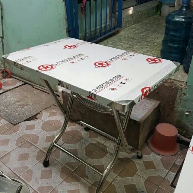 -Kích thước: rộng 50cm x dài 80cm x cao 75cm-Chất liệu: mặt bàn inox dày, chân bàn ống inox ¤32 rất chắc chắn và cứng cáp.