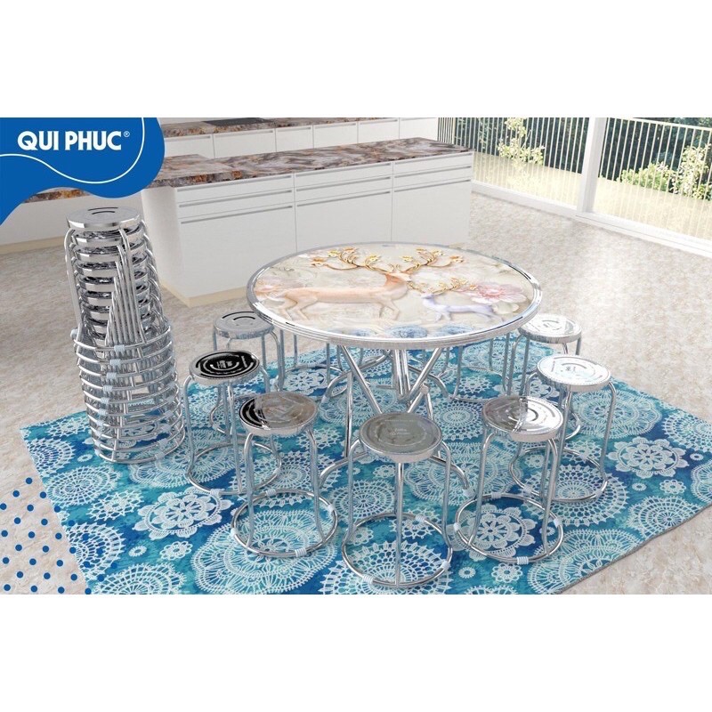 Nhà cửa & Đời sống > Nội thất > Khác || bàn inox cao cấp quy phúc in 3D trắng hoa tiếtCòn hàng