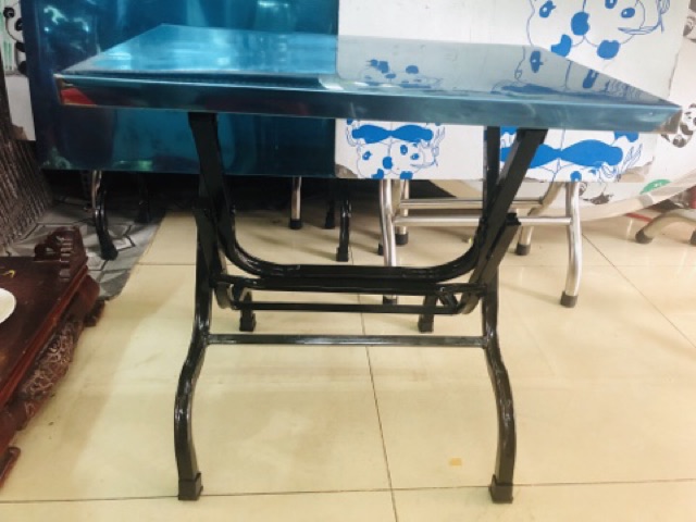Mặt bàn đc thiet ke tu inox 201 cao cap,chống gỉ sét,chân sắt thiet kế chắc chắn,chịu lực tốt dễ dàng sử dụng.Tiện dụng cho mọi nhà,co the dùng làm bàn học,bàn ăn,cafe...