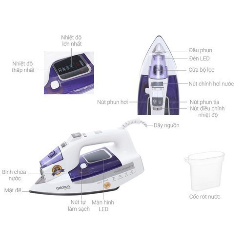 Thiết Bị Điện Gia Dụng > Thiết bị điện gia dụng nhỏ > Bàn là khô & Hơi nước || Bàn là, bàn ủi hơi nước GOLDSUN GPS-99D 2200W Mặt đế siêu chống dínhCòn hàng