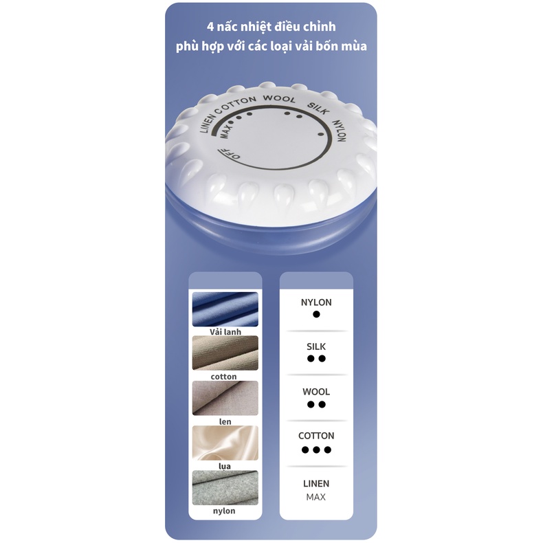 4 nấc điều chỉnh, phù hợp với các chất liệu vải khác nhau